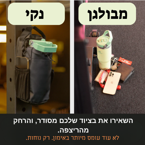 לא עוד להפיל את הטלפון או להשאיר את בקבוק המים על הריצפה המגעילה של החדר כושר. התיקים המגנטיים שלנו לחדר הכושר שומרים על הדברים שלך מוגנים, נגישים ולא על הריצפה כדי שתישאר מסודר, תלך בחדר כושר בחופשיות בלי לחשוב איפה שמתי את זה ואיפה את זה ותתמקד באימון. מעוצבים למי שמתאמן עם מטרה זו נוחות שכל מתאמן חייב!